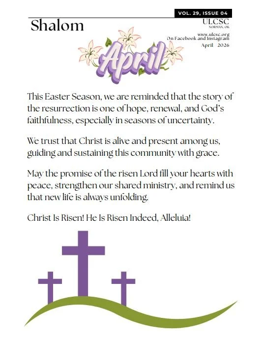If you want to be added to our mailing list for a printed version of the Shalom, please contact the church office.